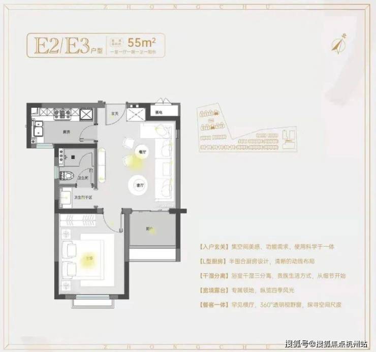 建面约55㎡1房1卫户型,低总价优质上车小户型,做到了双开间朝南+卫生间干湿分离+卧室带飘窗+客餐厅相连,小而美的一个户型。✨春申阳光官方售楼处电话:400-8080-420