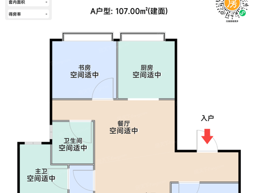 亮点:飞机户型、三开间朝南;独立玄关;南北通透;主卧套房;得房率约 79%