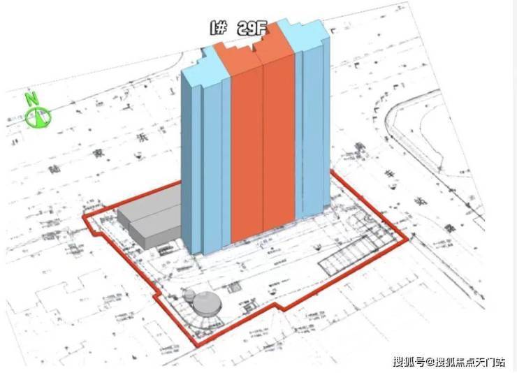 根据设计方案显示,项目拟建1栋总高29F住宅楼,以及1栋1F商业+1栋居委会+老年活动室等社区配套。