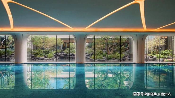约 1500㎡泳池会所:含老洋房风格旋转楼梯、约 500㎡恒温泳池、观景健身区。