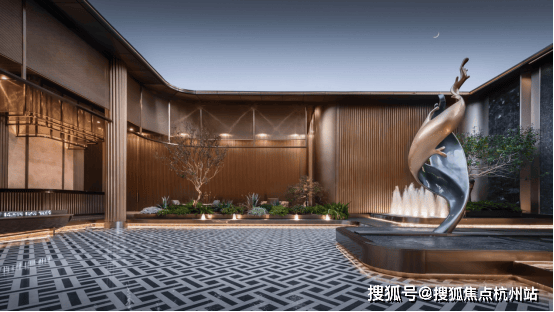 按照翡色礼境的景观理念,从入口的奢石、到内部的水景、雕塑甚至是局部的海派拼花铺装……每一幕视角皆是壁纸。