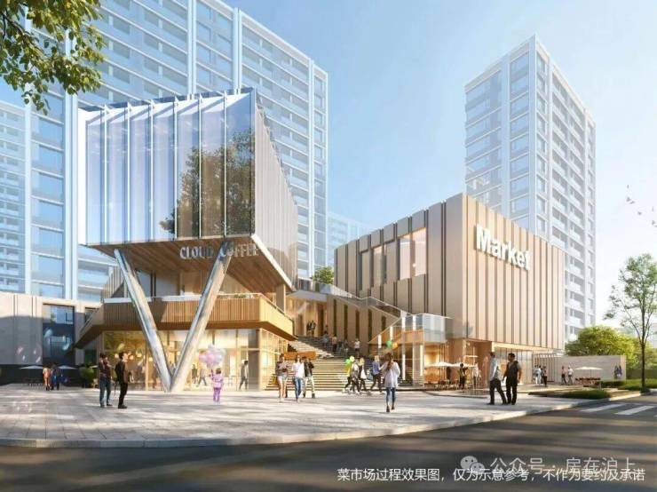 社区生活配套丰富多元。规划约1600㎡的会所,内含泳池、健身房等核心功能,满足成人运动休闲需求;架空层则专门设置了亲子乐园与欢聚盒子,为孩童提供玩乐天地,也为邻里创造社交空间,成为多功能的社区社交客厅。地块还规划有约2000㎡的菜场,未来有望打造为城市市集型的社区商业,便捷满足日常购物需求。