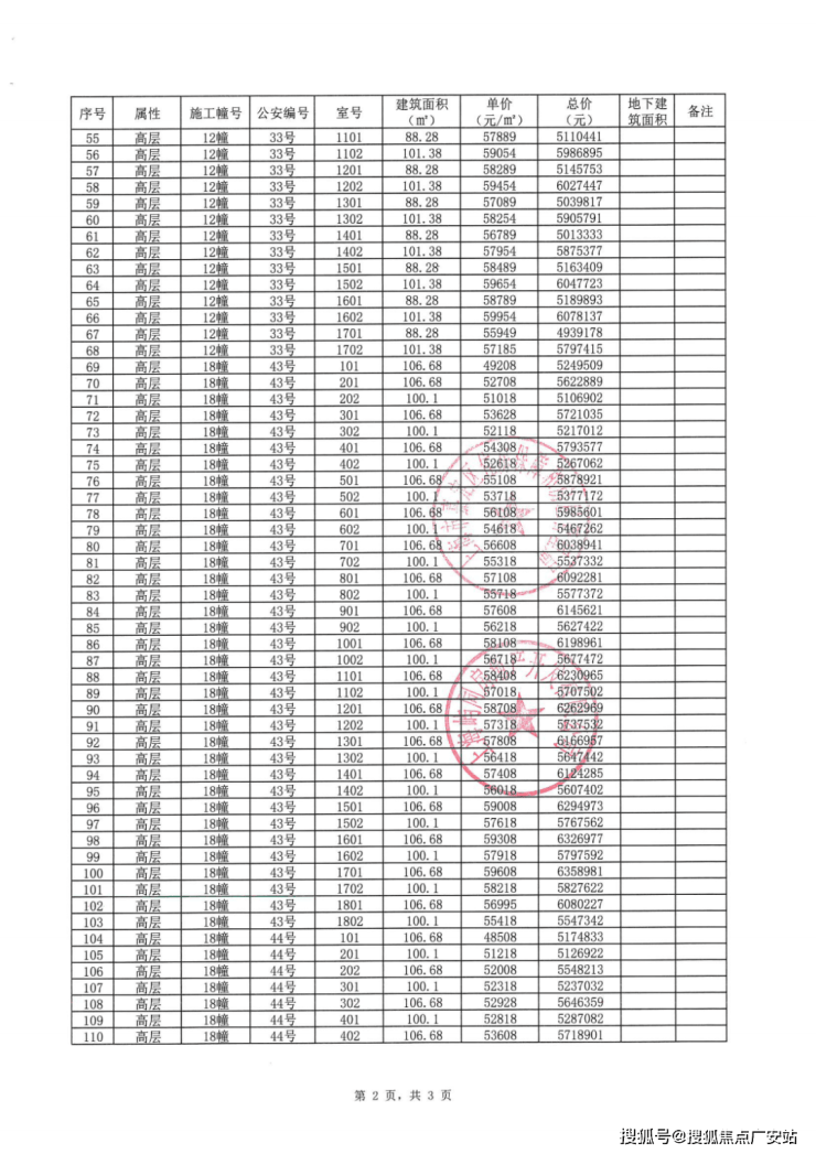 一房一价表: