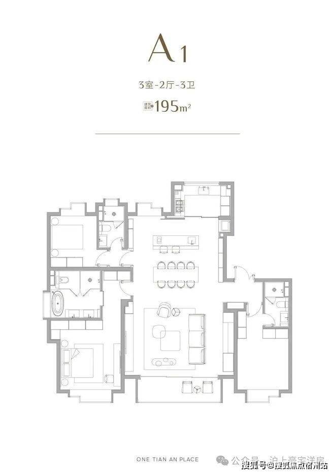 建面约195㎡大平层:终极改善顶配户型,阔绰横厅格局、全景落地窗设计,视野开阔无遮挡,主卧尊享独立卫浴、步入式衣帽间,大宅风范尽显,满足高端家庭对居住品质的极致追求。