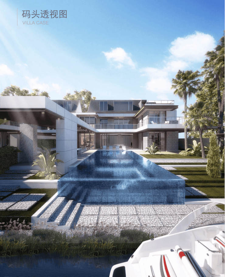 项目从此前曝光的设计方案就可以看出亮点,每一排别墅前都有一条渠道,引入水系,可以停游艇.