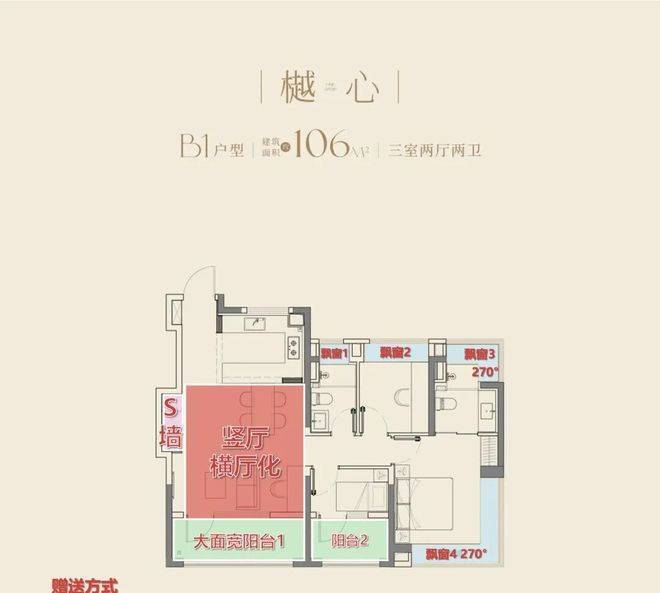 而在大华望樾106㎡的身上,我们看到了2026年新房户型的一种新趋势:竖厅户型横厅化。