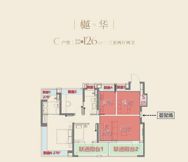 南向这个X空间,可以作为独立功能房,也可以和客厅合二为一,成为一个横厅户型。