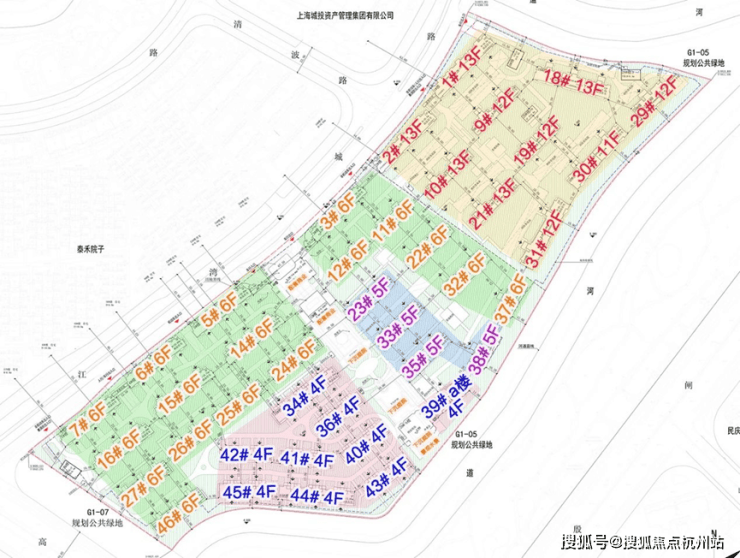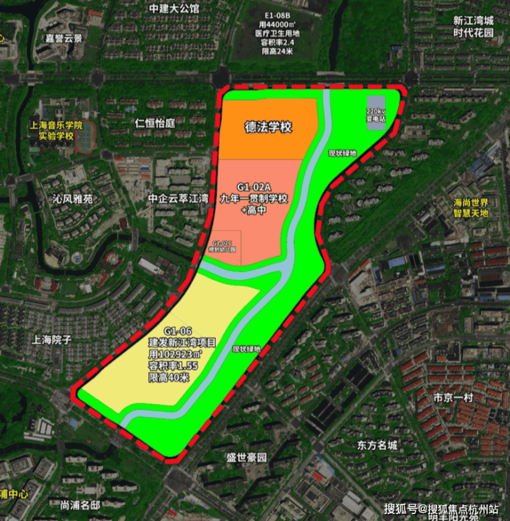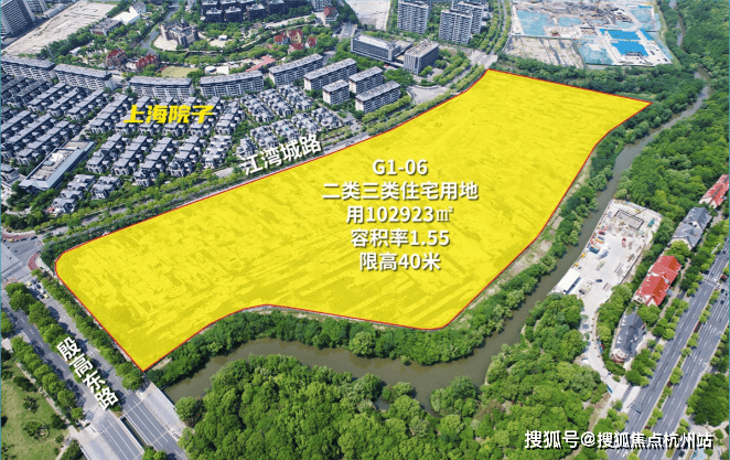 G1-06地块容积率约1.55,限高约40米,土地面积10.29万㎡,建筑面积约15.95万㎡,出让总价高达86.5亿元, 折合楼板价约5.42万/㎡,住宅套数下限为1156套,体量磅礴。