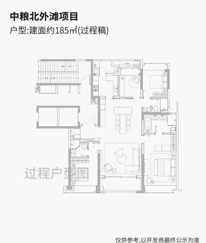 【中粮·北外滩壹号售楼处电话:400-9699-334✨【官方认证】✅✅✅】高层户型建面约185-228㎡纯粹4房,尺度感相当奢阔!高层户型均为两梯两户独立电梯厅配置,隐私性与尊崇感拉满!