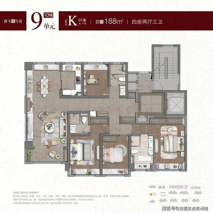 约188㎡四房:作为项目的“旗舰户型”,188㎡四房三卫采用十字中轴动线,三卧朝南+双套房设计,满足多代家庭对隐私与阳光的双重需求。