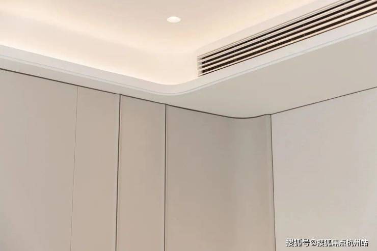 全弧美学:让空间告别“棱角”踏入样板间的第一秒,你会发现这里几乎“看不到一个直角”:墙面转角、吊顶边缘、门套线条,甚至石材台面与柜体边缘,均以流畅圆弧替代生硬直角。