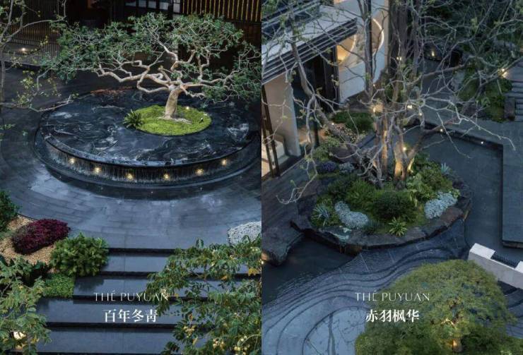 隐奢立面园林:铝板 + 陶板 + 玻璃幕墙高端立面,10 米垂直挑空立体山水园林,东方隐奢美学