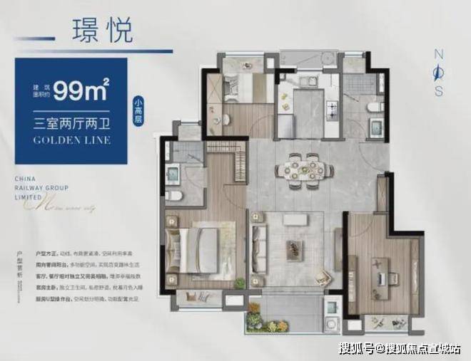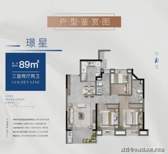 约89㎡的建面即能实现3房功能性还有2卫,主卧实现套房配置,放眼全市性价比都分外突出!格局上做到了三开间朝南,采光效果佳,客餐厨一体化减少动线,对室内面积极致利用!