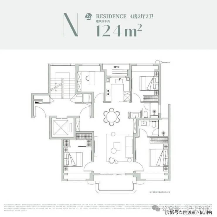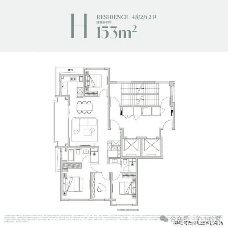 2#总高12F-13F,首层部分为社区配套+沿街商业+架空层,户型为建面约189-199㎡4房2厅3卫,两梯两户,层高约3.15米;