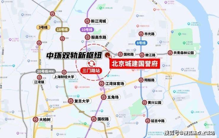 而北京城建国誉府距离三门路站直线约600米、距离20号线上海体育大学站直线约550米,步行可达。