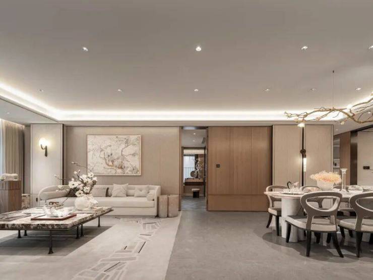 目之所及,细微之处皆有文章。康定壹拾玖的墙面,严选安第斯雪或晓山青珍贵石材,与木饰面、特色定制墙布组合设计,以丰富的层次,营造空间的呼吸感;客厅、餐厅、卫生间等区域地面定制石材,赤足走过,温润细腻的触感。