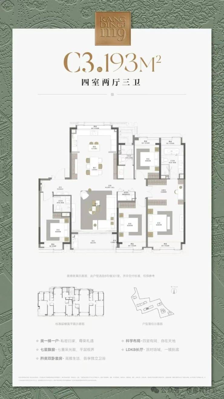 建面约193㎡4房:前期大热的爆款户型,有很多的业主期待这个产品,想买到他的难度可不低,需要及时做好备选。