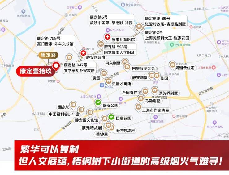 周边还不乏人文艺术地标,上海展览中心、荣宅、兰心大剧院、美琪大剧院、上海话剧艺术中心,历史文脉和时尚潮流在这里交织。