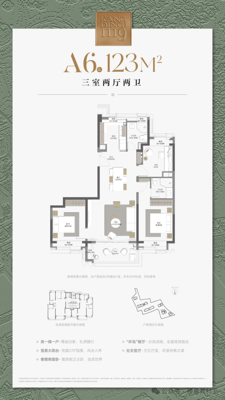 建面约120㎡边套3房:位于整个社区的最西侧,约270°的巨幕视野让这个户型的采光、视野达到顶峰,低总价的上车首选;