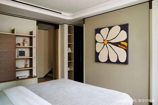 主卧套房以“主人之境”为设计原点,凭窗俯瞰北院绿意,或远眺城市霓虹,在书香、茶韵与艺术中,安放主人的精神世界。这里是时间与思想的容器,亦是海派家族文化传承的无声见证。