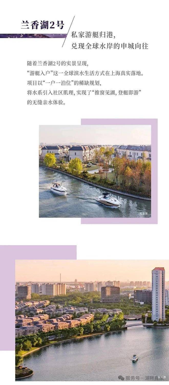 兰香湖2号售楼处电话:400-9699-334✨【官方认证】✅✅✅作为上海首个实现【游艇入户】的湖景社区,业主可将私人游艇直接停靠家门口的私家码头,登岸后经南北双庭院无缝直达室内。无论是清晨驾艇泛湖观景,还是傍晚举办游艇派对,结束后步行即可入户休整,高端社交与日常居住无缝衔接,复刻全球顶流水岸生活。