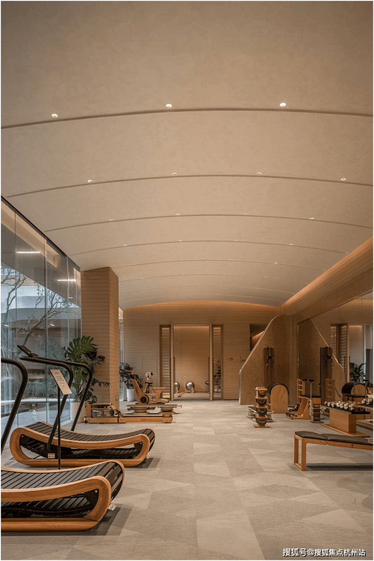 自然贯穿了整个社区公区的设计语言,整体约1200㎡立体会所+约1700㎡主题架空层,配备了私宴厅、瑜伽室、棋牌室等休闲空间。