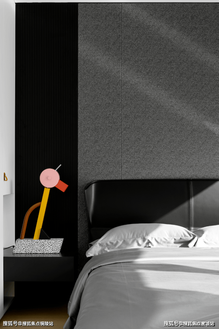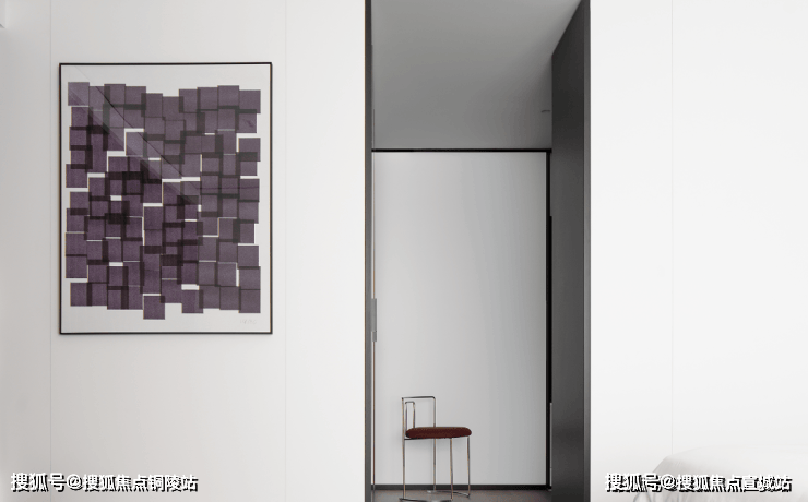 私密场域依旧保持静谧,黑白色基础上搭配了更多的色彩,例如深棕、浅紫等,艺术品的衬托深邃迷人,热络了家的氛围。