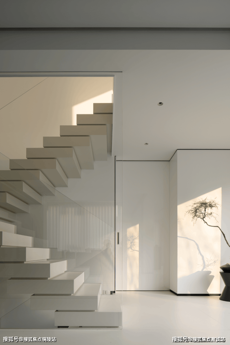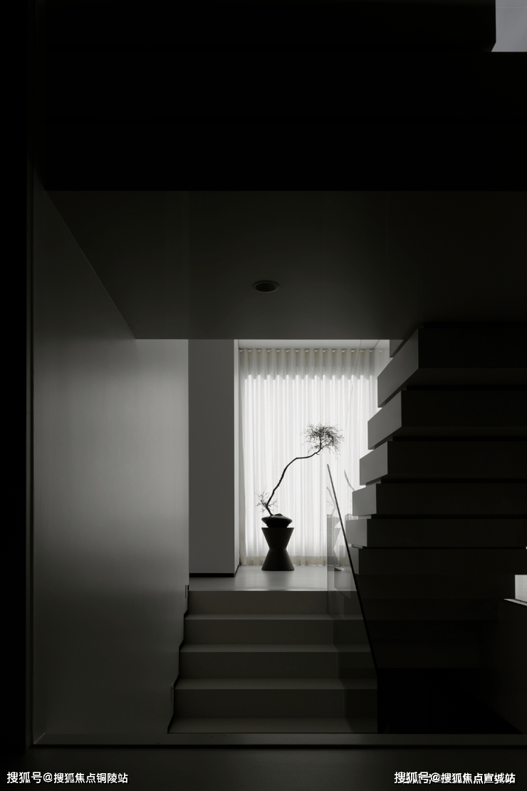 楼梯区完全被几何占据,自然光恰到好处的平衡,进一步呼应着空间的心境,衔接了生活和居所。
