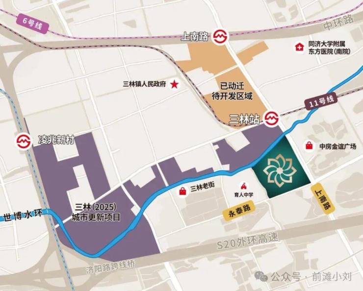 2025年,复兴岛举办的“上海2025城市空间艺术季”官宣的《上海中城地带规划》,三林老街(三林新天地)就在其中,是上海中城南段的重点片区之一。