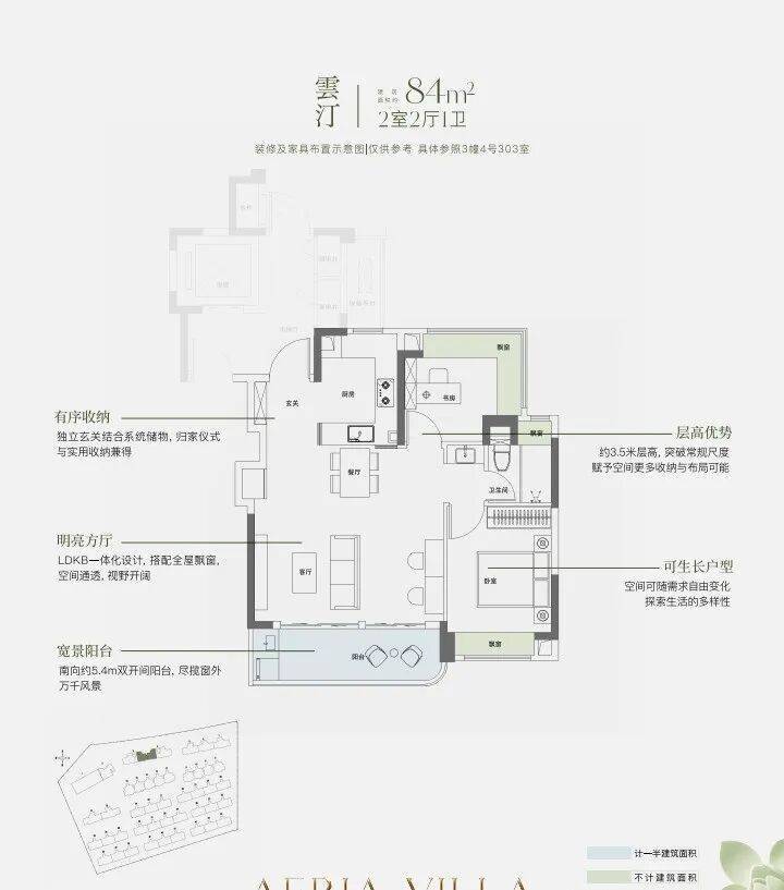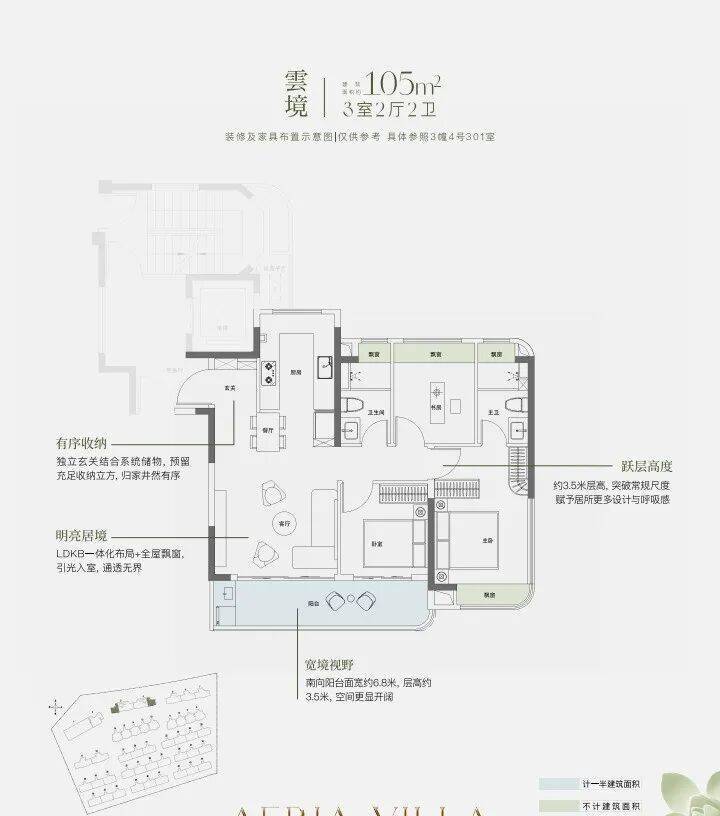 约9.8米南向面宽,配以超大尺度跑道式阳台,让室内外交融共生。