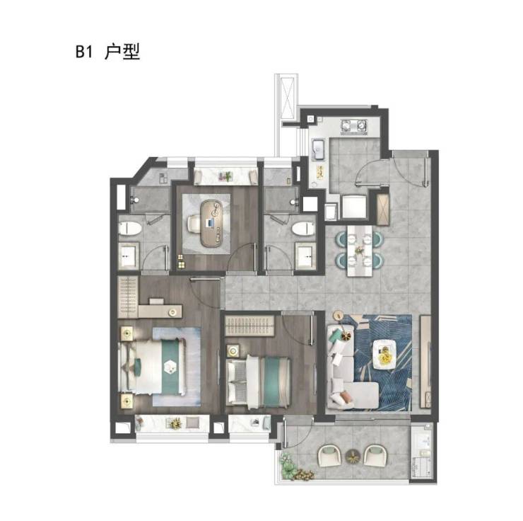 建面约99㎡3房2厅2卫(中间套)