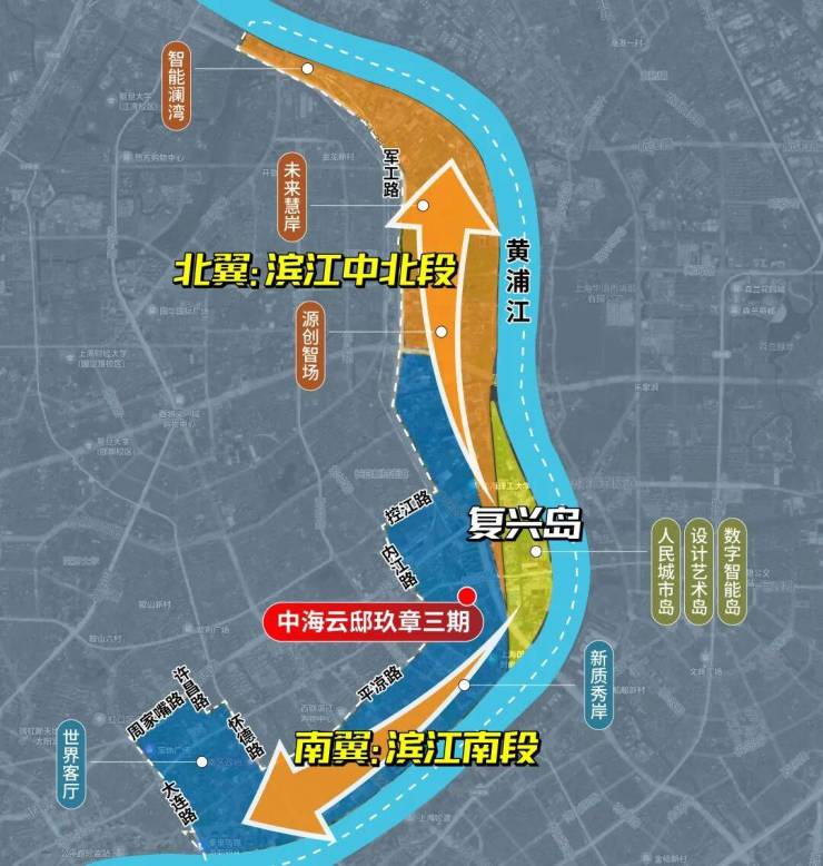 中海云邸玖章售楼处电话:400-8678-334☎️✽✽✽✽(官方认证)占位杨浦滨江宜居与未来兼具的核心商务区,而三期又是较核心的一个组团!