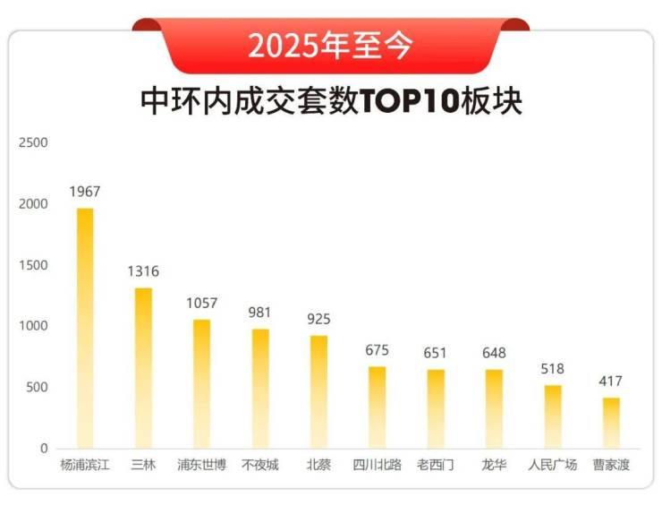 据数据统计,去年至今,杨浦滨江成交新房1967套,同期第二名的三林是1316套,第三名的浦东世博是1057套。杨浦滨江几乎是第二名的1.5倍,把整个中环内其他板块甩出了一个身位。