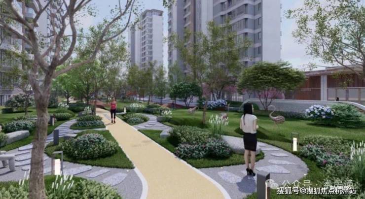 中央绿地作为社区的核心,铺设有健身跑道,选用环保材料,兼具弹性与防滑性,方便居民进行晨跑与健身。舒适的木质坐凳与现代简约的金属、石材元素相结合,提供了良好的休闲场所。