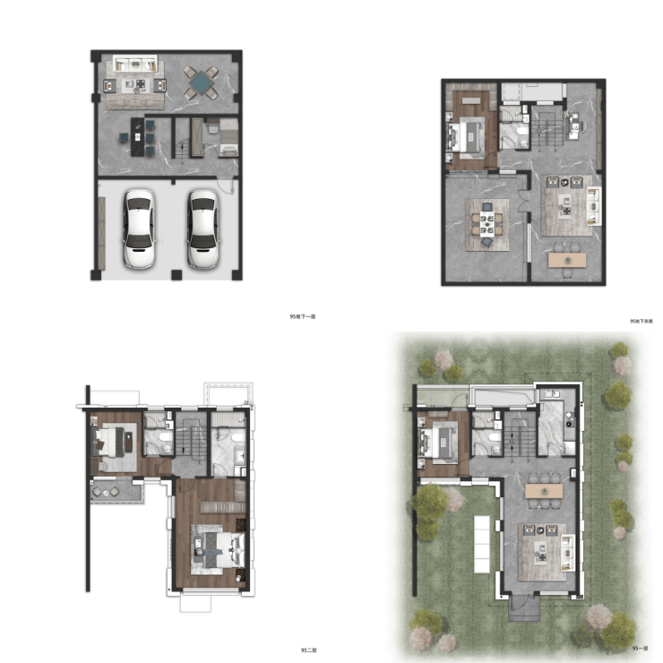 约126㎡的明星户型做到了5套房设计,地下一层、地上三层的空间形态,将空间尺度无限放大。