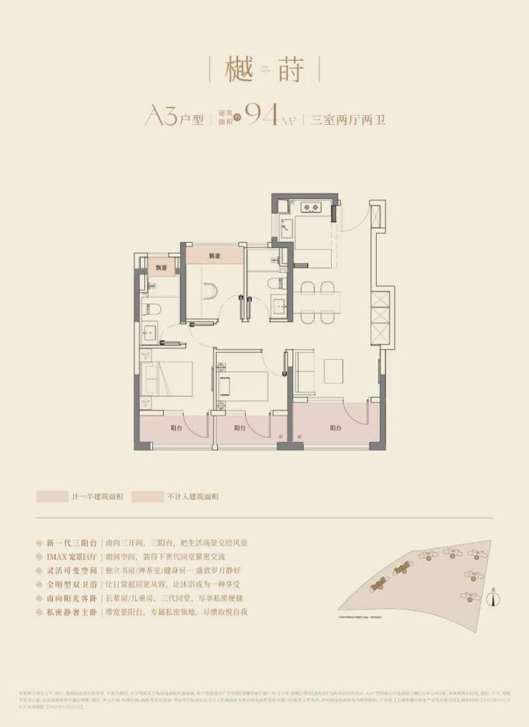 大华·望樾打造徐泾首个3.5代宅!高层三开间三阳台户型,为您的理想生活所享再加码。面积约94-149㎡的全能尺度,全户型三开间三阳台配置,可以满足所有阶段家庭的空间需求。
