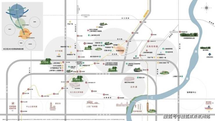 商业方面,江湾镇这个板块是宝山/静安/虹口/杨浦四区交界处,板块“左邻右舍”都是比较热闹的商圈——西面市北高新+协信、北面高境+宝山万达、东面杨浦五角场,南面虹口曲阳+四川北路商圈。