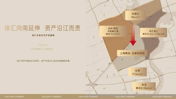 从徐汇开发趋势来看,徐汇向南延伸已成态势。近年来,徐汇作为热门的主城板块,住宅土地供应日渐紧张。随着内徐汇向南延伸,徐汇滨江以绝对实力承接了内徐汇的高单价,而随之南向开发的不断深化,上海南站区域暂无新房供应,而更靠近滨江的长桥板块相较之靠近徐汇腹地的田林、南站板块置业门槛更低,是典型的土地发展红利期。
