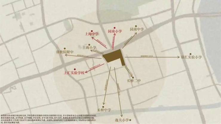 地块周边教育资源非常丰富,包括被誉为“华育中学亲儿子”的上海四大名校之一逸夫小学、上海中学、华东理工大学附中、上海小学、徐汇实验小学、长桥中学等。(学校对口情况须在本小区交付后以政府教育主管部门及校方的最新政策为准)