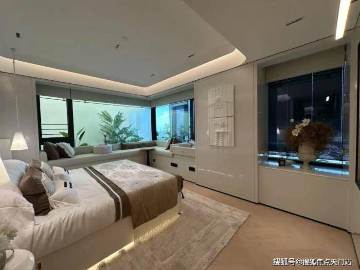 值得一提,“270°视野”贯穿户型,主卧、北向次卧带270°飘窗,纵览城市景;厨房竟然也有转角窗,阳台也带转角,这户型简直为观景而生。