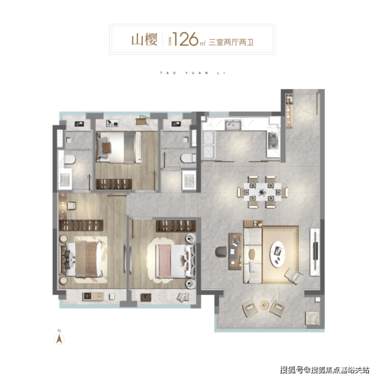 通过新桃源会客厅社区广场与独立社区会客大堂、林荫归家步道、中央景观聚场、品质入户单元昭示性景墙+专属入户铺装、首层精装大堂五大节点,赋予归家路途更多逸趣与美好。