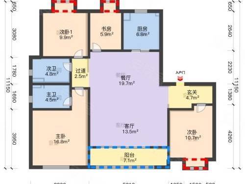 客厅:4.5 米面宽,落地窗 + 全景阳台