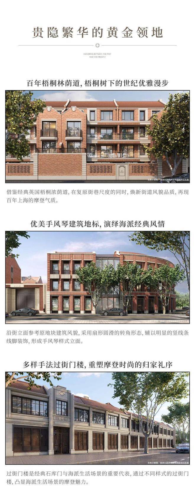 在建筑风格上,项目运用了4大新精致图案,从拱券图案、砖石拼花再到引入了文艺复兴建筑经典手法——刻槽技术,打造建筑装饰带,运用石库门椭圆造型元素,打造前沿建筑符号!