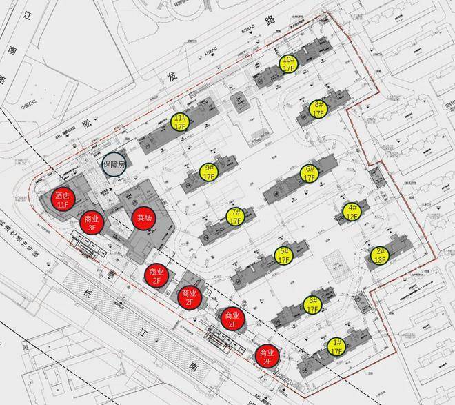 项目总建筑面积18.8万㎡,地上计容总建筑面积12.48万㎡。根据项目规划设计方案:项目拟建11栋12-17层可售住宅,总户数876户,可售住宅约807套;另需建设1栋保障性住宅房,靠近长江南路一侧规划有酒店、商业、菜场、社区食堂等业态。