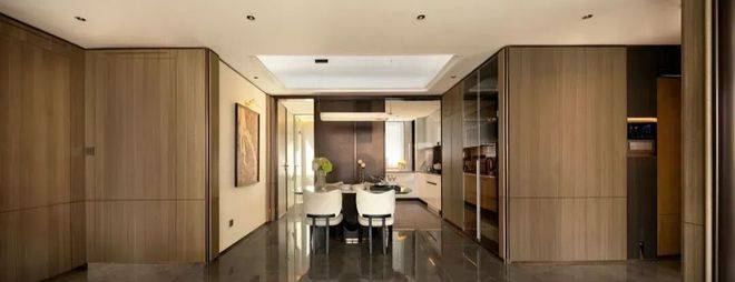 营造约60m尺度奢阔归家门庭,通过奢石、铝板、水景、弧线等精妙组合,成就江湾显赫的府邸门面,礼遇每一次的世界归来。