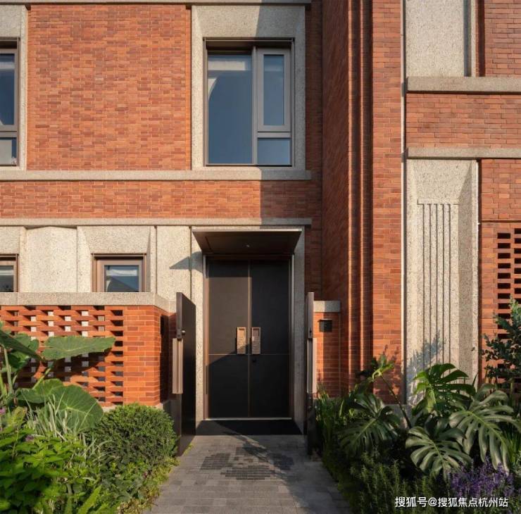 每一处细节都可以看出翠湖滨江的极尽用心——精巧的红砖镂空景墙、房檐上隐约可见的山茶花雕花、极具海派韵味的石库门、石材斜切面的窗套。