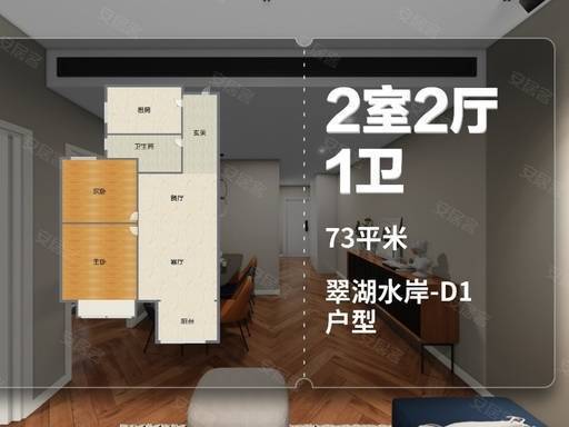 1. 建面约 73㎡两房两厅一卫 —— 刚需优选,总价亲民
