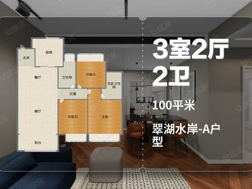 3. 建面约 100㎡三房两厅两卫 —— 二胎家庭,舒适改善