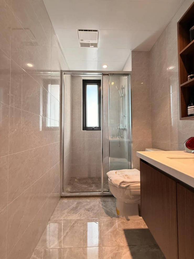 卫生间离连廊较远,私密性好,且开门不正对卧室门,另带飘窗。增加了实用性;