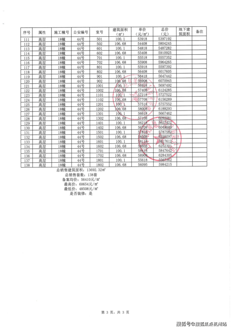 一房一价表:
